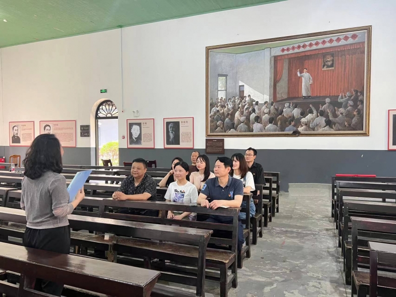全体党员实地参观了大礼堂、第八班教室、第八班寝室、水井等红色纪念点和“一代伟人从这里起步”主题陈列展厅,共同追忆青年毛泽东在湖南第一师范求学、任教以及从事早期革命活动的经历。现场深切地感受、领悟一代伟人以天下为己任,躬身笃学践行,执着求索真理投身革命事业的青年之志。