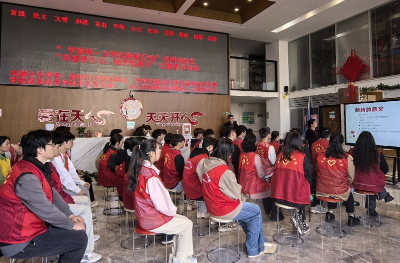 启动仪式明确方向。活动开始前,学院组织召开启动仪式,并邀请学院党总支书记尹玉林作活动讲话。他强调:“雷锋精神是永恒的,新时代党员和青年要将其内化于心、外化于行,在实践中锤炼品格、服务社会。”同时结合当前社会需求,从安全意识、服务态度、团队协作三个方面对志愿者提出具体要求,号召大家以高度的责任感投身实践,让雷锋精神在基层一线绽放光芒。