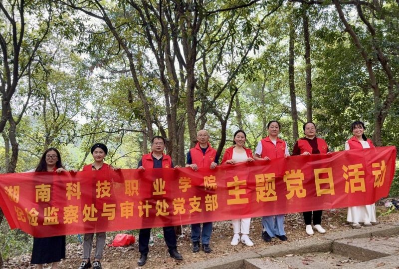 为深入贯彻党的二十大及二十届三中全会精神,践行绿色发展理念,深化党建引领作用,2025年3月26日下午,纪检监察处与审计处党支部组织全体党员赴湘潭昭山风景区开展“党建+志愿服务”主题党日活动,通过“垃圾清洁志愿行动”为生态文明建设贡献力量,以实际行动彰显党员的先锋模范作用。