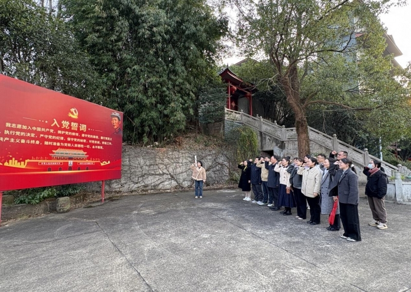2025年12月17日,为巩固拓展主题教育成果,推动党史学习教育常态化长效化,湖南科技职业学院党政办与档案馆党支部与软件学院教师第二党支部联合开展了"红色寻迹·光影铸魂"主题党日联学共建活动。通过支部协作、实地参观与观影学习相结合的形式,创新党性教育模式,促进党建与业务深度融合。当日下午,全体党员前往湖南红色档案馆参观学习。在近一小时的参观过程中,党员教师们认真聆听讲解,仔细观看历史文献和实物展品,深切感悟党的光辉历程和伟大成就。一件件珍贵史料生动展现了革命先辈的奋斗足迹,为在场的教育工作者上了一堂生动的党史课。参观期间,戴书记带领全体党员面向党旗庄严站立,以铿锵有力的声音重温入党誓词。铮铮誓言在红色展馆中回响,表达了对党的忠诚承诺和为人民教育事业不懈奋斗的坚定决心,进一步强化了党员的身份意识和责任担当。